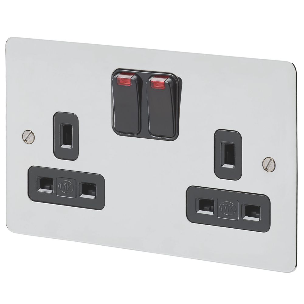 Mk Edge 13a 2 Gang Dp Switched Plug Socket Polished Chrome With Neon With Black Inserts Sockets Screwfix Ie